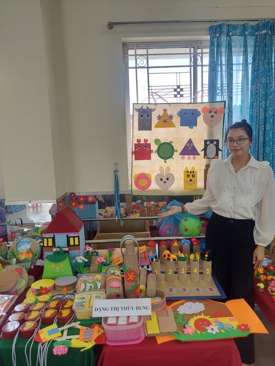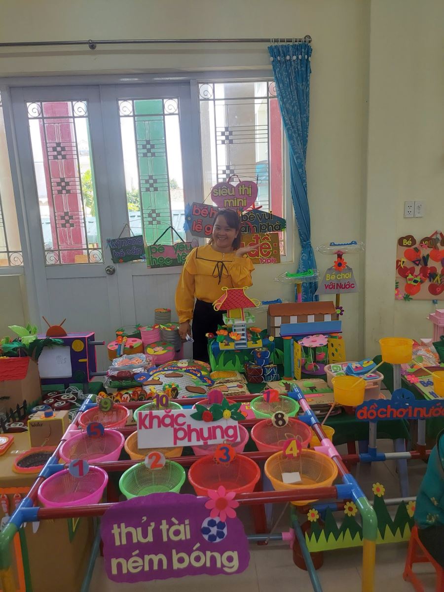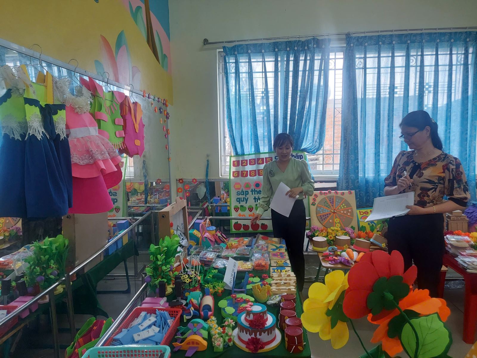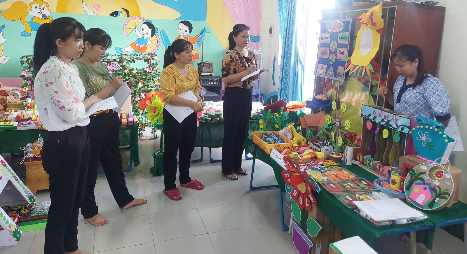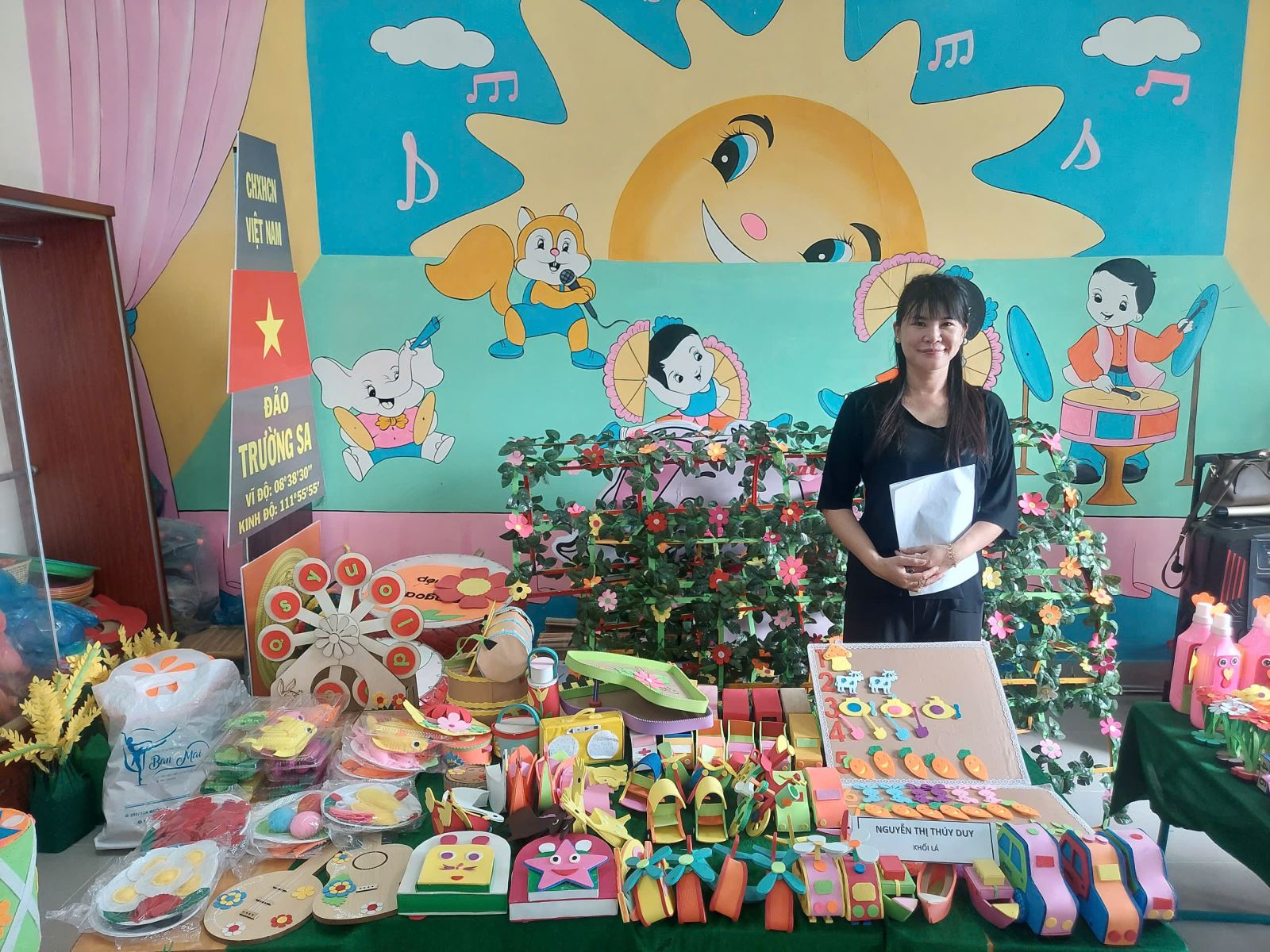 Việc tổ chức làm đồ dùng, đồ chơi dạy học trong trường mầm non là một hoạt động thiết thực và ý nghĩa, góp phần nâng cao chất lượng chăm sóc, giáo dục trẻ. Thông qua hoạt động này, đội ngũ giáo viên phát huy được tinh thần sáng tạo, tận dụng nguyên vật liệu sẵn có, phế liệu an toàn, thân thiện với môi trường để tạo nên những sản phẩm sinh động, hấp dẫn, phù hợp với từng chủ đề giáo dục. Hoạt động làm đồ dùng, đồ chơi không chỉ giúp tiết kiệm kinh phí, làm phong phú môi trường học tập mà còn mang lại niềm vui, hứng thú cho trẻ trong các giờ học, giúp trẻ phát triển toàn diện về nhận thức, ngôn ngữ, thẩm mỹ và kỹ năng thực hành. Đây cũng là dịp để giáo viên giao lưu, học hỏi kinh nghiệm, lan tỏa tinh thần yêu nghề, mến trẻ trong toàn trường..jpg)
