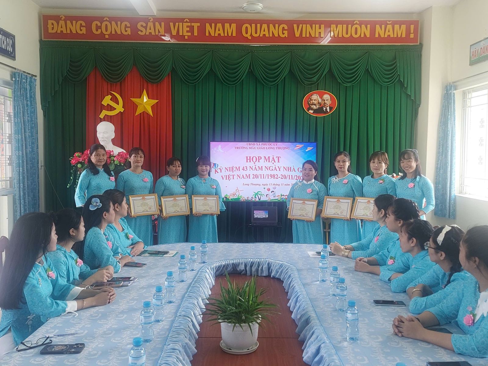 Hòa trong không khí vui tươi của tháng tri ân, trường Mẫu giáo Long Thượng tổ chức Lễ kỷ niệm Ngày Nhà giáo Việt Nam 20/11 nhằm tôn vinh những đóng góp to lớn của đội ngũ cán bộ, giáo viên trong công tác nuôi dưỡng, chăm sóc và giáo dục trẻ và biểu dương những thành tích nổi bật của đội ngũ cán bộ, giáo viên. Đây là dịp để mỗi thầy cô thêm tự hào về nghề nghiệp của mình, đồng thời tiếp thêm động lực để tiếp tục cống hiến cho sự phát triển của nhà trường và thế hệ mầm non tương lai.