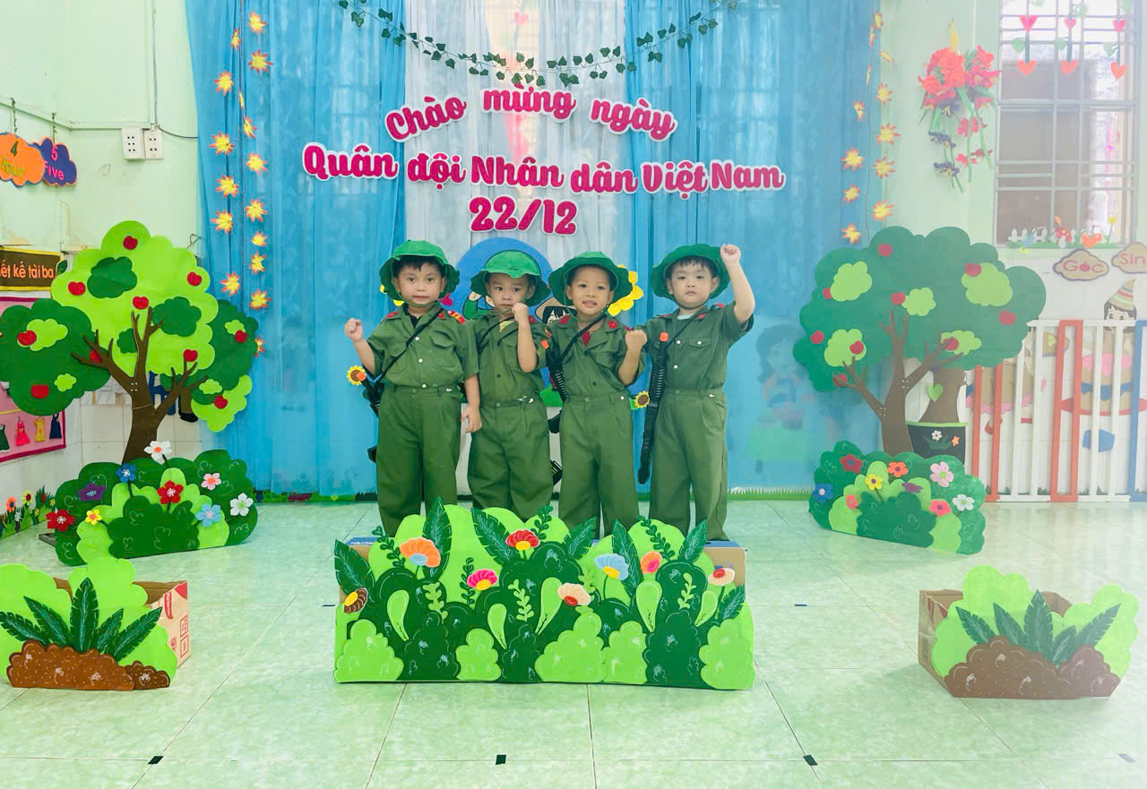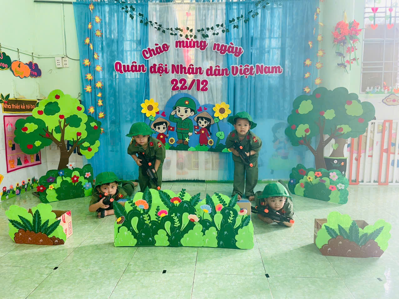 Trường MG Long Thượng tổ chức cho trẻ trải nghiệm làm chú bộ đội nhân ngày thành lập Quân đội nhân dân Việt Nam 22/12